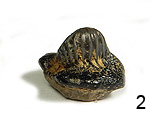 Körper mit Rostrum ca. 5 cm, auf dreiseitig gesägtem Plattenkalk ca. 9,5 x 9,5 cm. Extremitäten und Antennen weitgehend erhalten, Panzer weitestgehend erhalten. € 29.- |