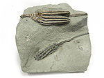 Protaxocrinus sp. Seelilie. Ordoviz. Fangarme mit deutlich sichtbaren Zirrhen auf dünner, kleiner Platte 4 x 4 cm. Die Arme sind auch auf der Unterseite der Platte zu sehen, die Theka/der Kelch fehlt allerdings ganz. Joliette, Provinz Québec, Canada. Sehr selten. € 29.- |