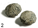 Trigonocarpus parkinsoni BRONGNIART, 1828. Farnsamer-Samen. Oberkarbon; Westfal B (Roof Shale über Wigan 9' Coal Seam). Crock Hay Open Cast, Wigan, Lancashire/England. In aufgebrochener Konkretion; Konkretion 4,6 cm, Fossil 2 cm. Selten. € 22.- |