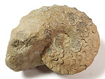 Ceratites cf. evolutus PHILIPPI, 1901, juvenil. Leitform. Mitteltrias; Hauptmuschelkalk (Evolutus-Zone). Troistedt, Unterfranken/Bayern. Phragmokon mit Wohnkammer-Bereich (1/3 Windung); Durchmesser ca. 7,5 cm; rückseitig nicht präpariert. (Cera 15) € 42.- |