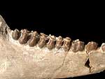 Mesohippus bairdi (LEIDY, 1850). Vorfahre der heutigen Pferde. Mittleres Oligozän; Scenic Member, Brule Formation. South Dakota/USA. Kieferfragment mit schöner typischer Bezahnung. € 38.- |