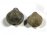Gastrolithe (Dinosaurier-Magensteine) ("Gizzard Stones", "Tummy Tumblers"). Von den zahnlosen bzw. kleinzähnigen Sauropoden aufgenommene Gerölle zur Nahrungszermahlung im Magen (Extremfund: Ein Seismosaurus- Skelett aus der Morrison Formation New Mexicos mit 240 Magensteinen). Oberjura; Morrison Formation (Kimmeridge). Henry Mountains bei Hanksville, Wayne County, SE-Utah/USA. Verschiedenfarbige Flint-/Quarz-Gerölle. Gizz 06: Maximal 6,5 cm; weiß. Gizz 10: Maximal 4,3 cm; graue. Gizz 11: Maximal 3,6 cm; rötlichgrau. Gizz 13: Maximal 4.4 cm; dunkelgrau. |