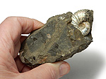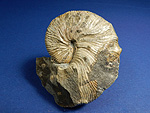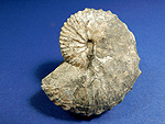 Pseudaspidoceras (Ambakabites) cf. conciliatum (STOLICZKA, 1865). Ammonit. Oberkreide; Unterturon. Region Atsimo-Andrefana/Südwest-Madagaskar. Phragmokon mit Wohnkammer (1/3 der Außenwindung); Durchmesser ca. 16 cm; rechte Seite nicht frei präpariert. Selten. € 78.- |