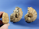 Puzosia mayoriana (ORBIGNY, 1841). Ammoniten. Oberkreide; Cenoman. Sakondry-Tal, Südwest-Madagaskar. Wohlerhaltene beidseitig frei präparierte Phragmokone; teilweise Wohnkammer-Erhaltung. Puzo 02: Durchmesser 7 cm. 2/3 des letzten Umganges = Wohnkammer. € 32.- Puzo 03: Durchmesser 9,1 cm. € 33.- Puzo 05: Durchmesser 9,2 cm. 1/3 des letzten Umganges = Wohnkammer. € 39.- VERKAUFT |