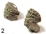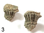 Orbitolina concava (LAMARCK, 1816). Großforaminiferen. Oberkreide; Obercenoman. Bargème E Comps-s-Artuby, Département Var, Provence/Frankreich. Aus Mergelfazies. 2 Ex. ca. 1,5 – 2,3 cm. |