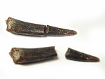 Triceratops horridus MARSH, 1889. Dinosaurier-Zähne. Oberkreide; Obermaastricht (Hell Creek Formation). Fergus County, Montana/U.S.A. Höhe ca. 1,5 - 2 cm; abgekaut; die Zähne stammen von ausgewachsenen Tieren. Sehr selten angeboten. € 33.- Tricer 4: 18 mm |