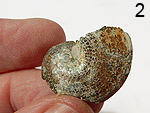 Sphenodiscus lenticularis (OWEN). Oberkreide, Maastricht (Fox Hills Formation), Edgemont, Fall River County, South Dakota/USA. Es handelt sich um Einzelstücke. Bitte die gewünschte Nummer angeben: Spheno1: 2,2 cm, perfekte Erhaltung, rückseitig gesteinsbedeckt. € 19.- Spheno2: 2,5 cm, beidseitig frei, wunderschöne Loben, Fehlstelle am Venter. € 19.- Spheno3: 3,2 cm, leicht irisierend, Fehlstelle am Venter. € 19.- Spheno4: 3,5 cm, mit kleinem irisierenden Ammoniten auf Stufe, 6 x 7,5 cm. € 26.-