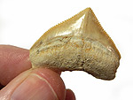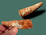 Deltadromeus agilis SERENO et al., 1996. Raptorzahn von Dinosauriern der Ceratosauria. Oberkreide; Obercenoman (Baharyia Formation, Gebel Dist Member). Taouz, marokkanische Sahara/Marokko. Mit feingezähnelten Schneidekanten; in Größen von 1,0 cm ( 4: € 20.- ), 1,4 cm ( 3: € 27.- ), 1,9 cm ( 2: € 34.- ) und 2,3 cm ( 1: € 38.- ). (Preishinweis: 2,5-cm-Zähne werden in den USA zwischen 80 bis 100 US $ angeboten.) Bitte die gewünschte Nummer/Größe angeben. |