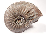 Amaltheus margaritatus MONTFORT, 1808. Zonen-Leitammonit. Mittlerer Unterjura (Oberpliensbach; Margaritatus-Zone). Steinbruch „Roche Blain“ bei Fresney-le-Puceux SW Caen, Dép. Calvados, Normandie/F. Steinkern; Phragmokon; Durchmesser 14,5 cm; linksseitig korrodiert. € 48.- |
