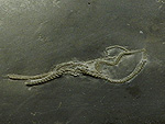 Protaxocrinus sp. Seelilie. Ordoviz. Fangarme mit deutlich sichtbaren Zirrhen auf dünner, kleiner Platte 4 x 4 cm. Die Arme sind auch auf der Unterseite der Platte zu sehen, die Theka/der Kelch fehlt allerdings ganz. Joliette, Provinz Québec, Canada. Sehr selten. € 29.- |