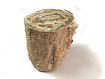 Dadoxylon sp. Kieselholz, strukturbietend; ganzrandiges kleines Stämmchen, Stirnseite poliert. Unterperm; Oberautun (Rotliegendes; Leukersdorfer Schichten; Zeisigwalder Rhyolithtuff). Berühmte Lokalität: Hilbersdorf bei Chemnitz (Stammfund aus dem Jahr 1971). Durchmesser ca. 6 x 5,3 cm, Stammlänge 7,4 cm. € 41.- |