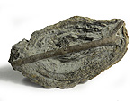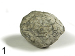Trigonocarpus parkinsoni BRONGNIART, 1828. Farnsamer-Samen. Oberkarbon; Westfal B (Roof Shale über Wigan 9' Coal Seam). Crock Hay Open Cast, Wigan, Lancashire/England. In aufgebrochener Konkretion; Konkretion 4,6 cm, Fossil 2 cm. Selten. € 22.- |